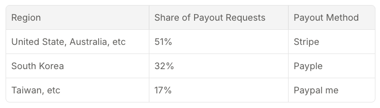 - Users saw only the payout methods available in their country